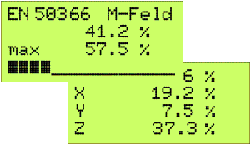4行LC顯示屏提供了特別的便利:總磁通密度與允許極限值的比值直接以百分比形式顯示,同時(shí)顯示X,Y和Z分量使識(shí)別更加容易房間里的磁力線。模擬條的顯示以及最大值,最小值和平均值有助于進(jìn)一步定位,而設(shè)備內(nèi)部的FFT分析則可顯示高達(dá)20 kHz范圍內(nèi)的頻譜。另外,可以通過(guò)UMS4的串行接口將PC監(jiān)視器用作第二個(gè)大幅面顯示器。